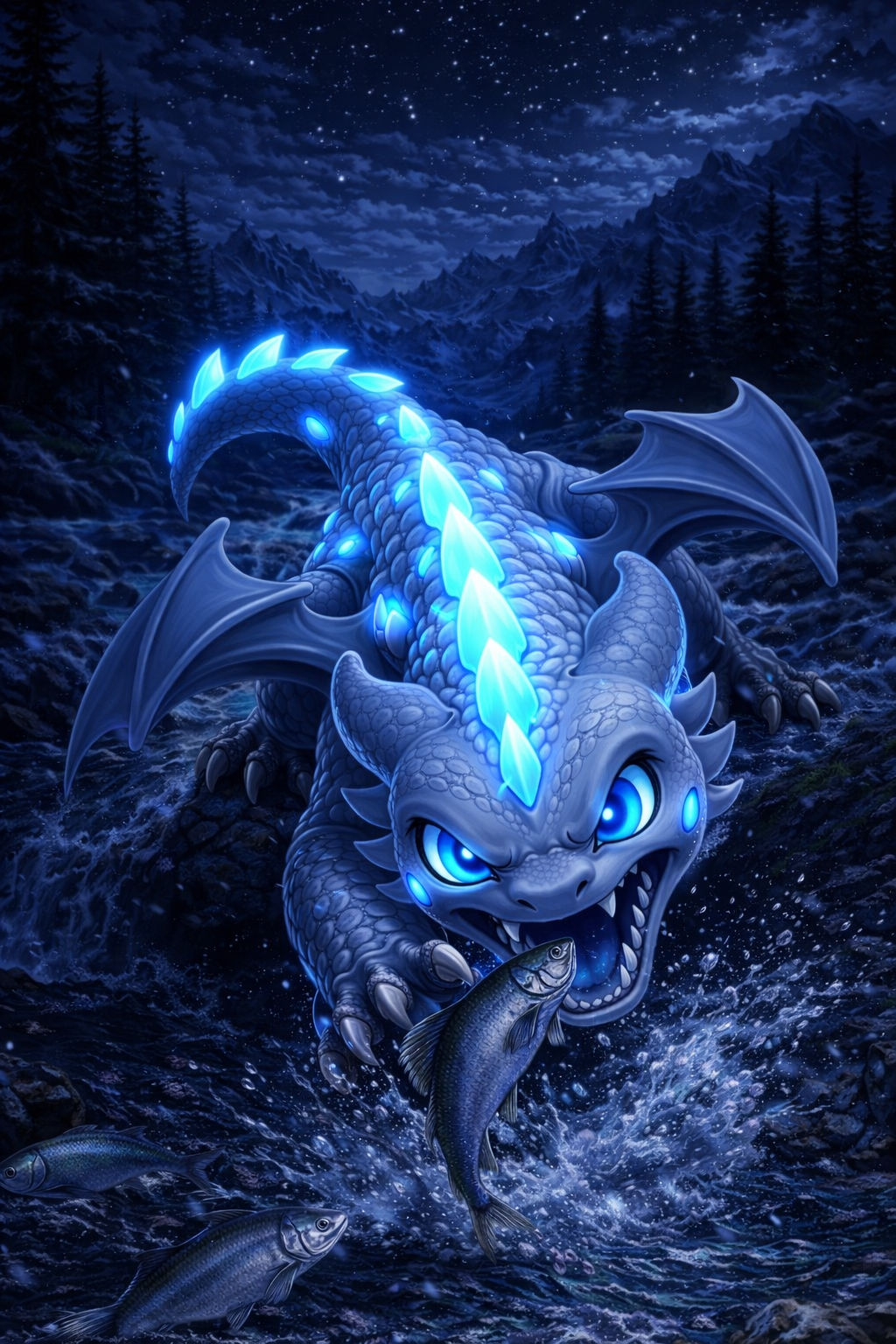Bioluminescent spikes and eyes that glow softly in darkness